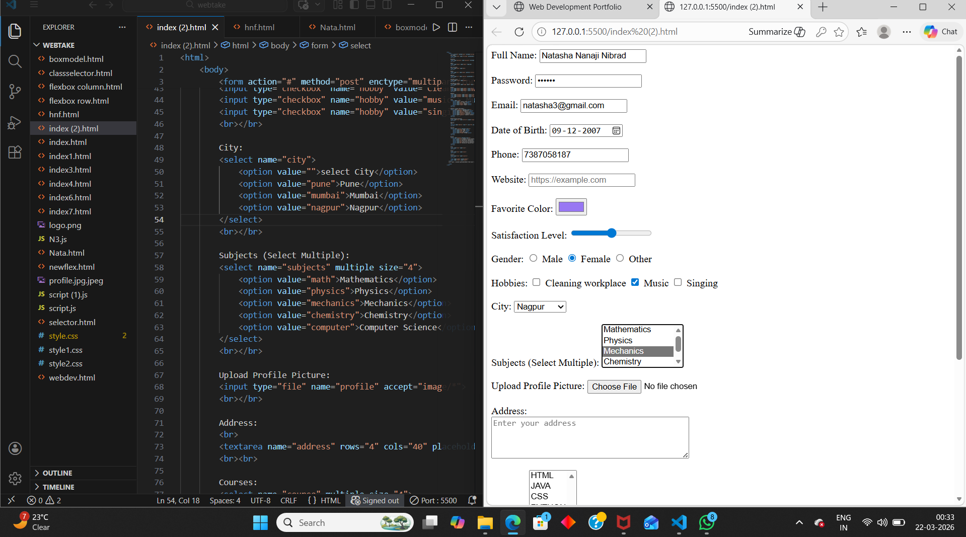 Learned fundamental HTML tags like paragraph, bold, italic, and marquee.